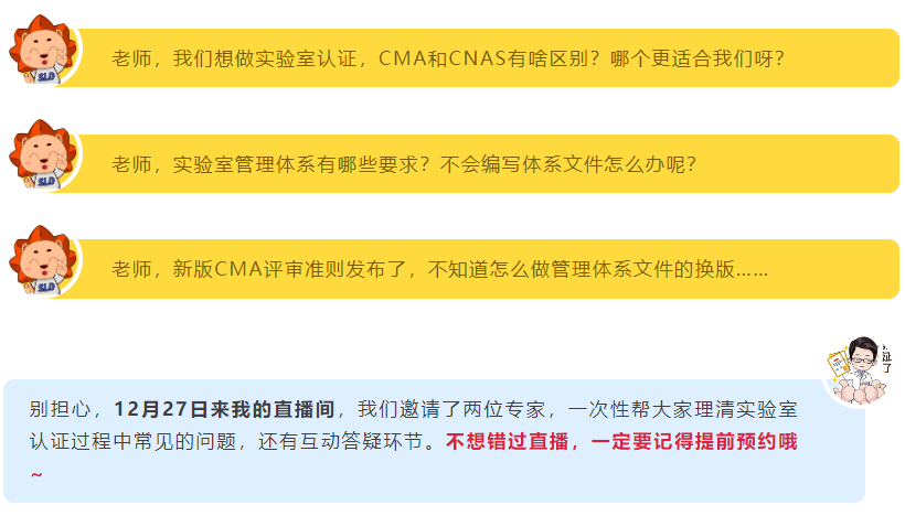 直播预告| CMA和CNAS哪个更适合我的实验室?新评审准则下体系换版要点有哪些?这次终于说清楚了!